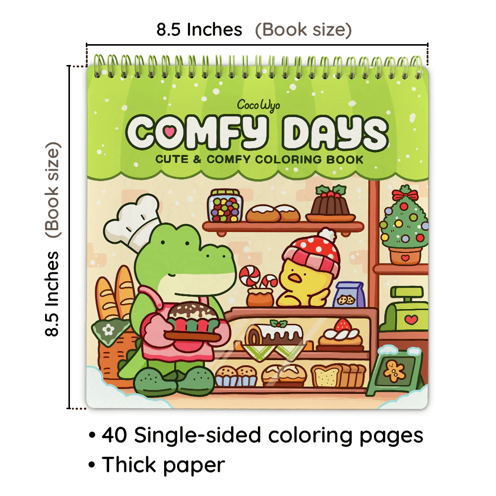 Bring cozy moments with Comfy Days, a spiral-bound coloring book. Sized 8.5 x 8.5 inches, it features 40 hand-drawn pages with warm, everyday scenes. Perfect for unwinding or gifting. The set includes matching stickers for a complete cozy experience.